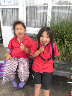At the end of last week Hannah's Mum bought in some yummy ice blocks as a treat for the whole class. We really enjoyed sitting in the sun as we ate our ice block.